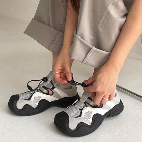 여성 키높이 운동화 통굽 스니커즈 발편한 워킹화 굽높은 발볼넓은 하이탑 어글리 런닝화 굽있는 편한 단화