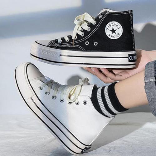 국산 여성 캐주얼 키높이 하이탑 스니커즈 발편한 캔버스 운동화