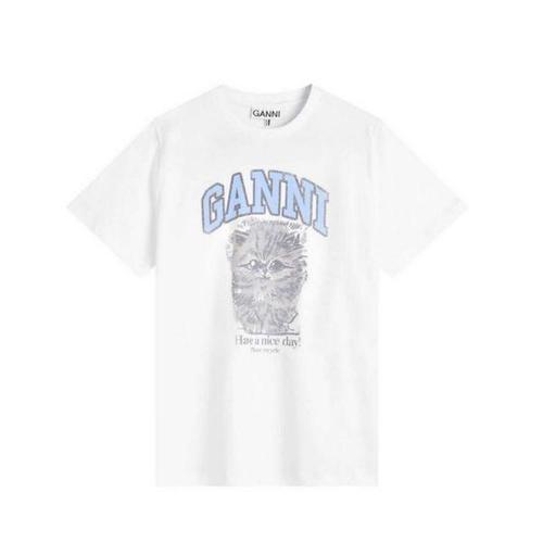 [가니]25FW 가니 화이트 키티 마고 릴렉스 프린트 티셔츠 T4272 151 STK