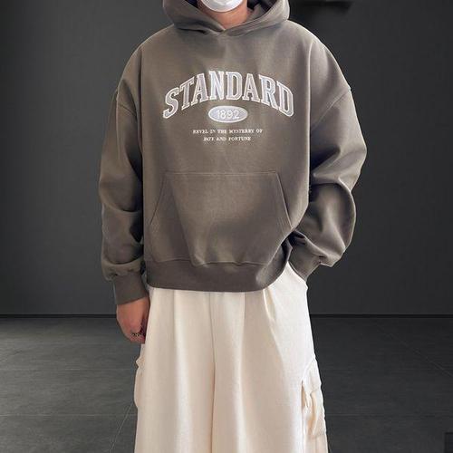 [에이치플러스몰]스탠다드 볼드 자수 오버핏 크롭 후드티 (3color) 이중지합포 빅사이즈 커플 봄 가을 겨..