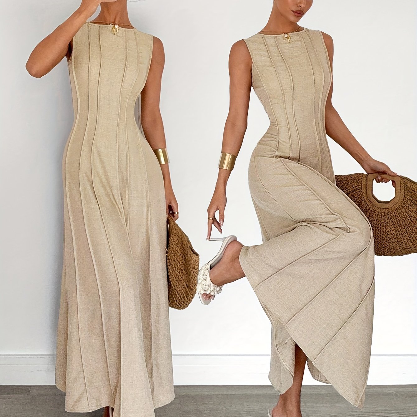 TEMU 여성용 단색 롱 드레스, 데일리룩으로 완벽