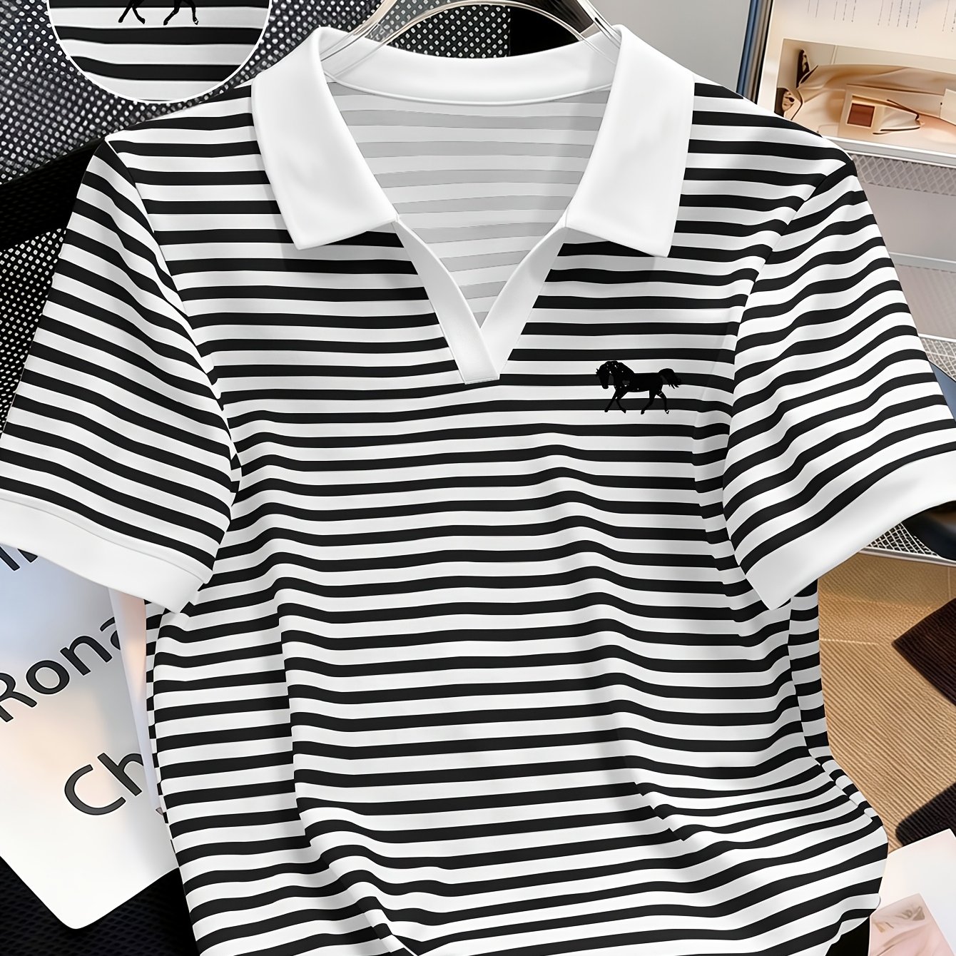 TEMU 하트와 말 실루엣 프린트 패션 폴로 셔츠, 부드럽고 매끄러운 원단, 편안한 착용감, 주름이 잘 나지 않음, 클래식 폴로 칼라, 캐주얼 스타일, 젊고 에너쥬의 캠퍼스 느낌 15385