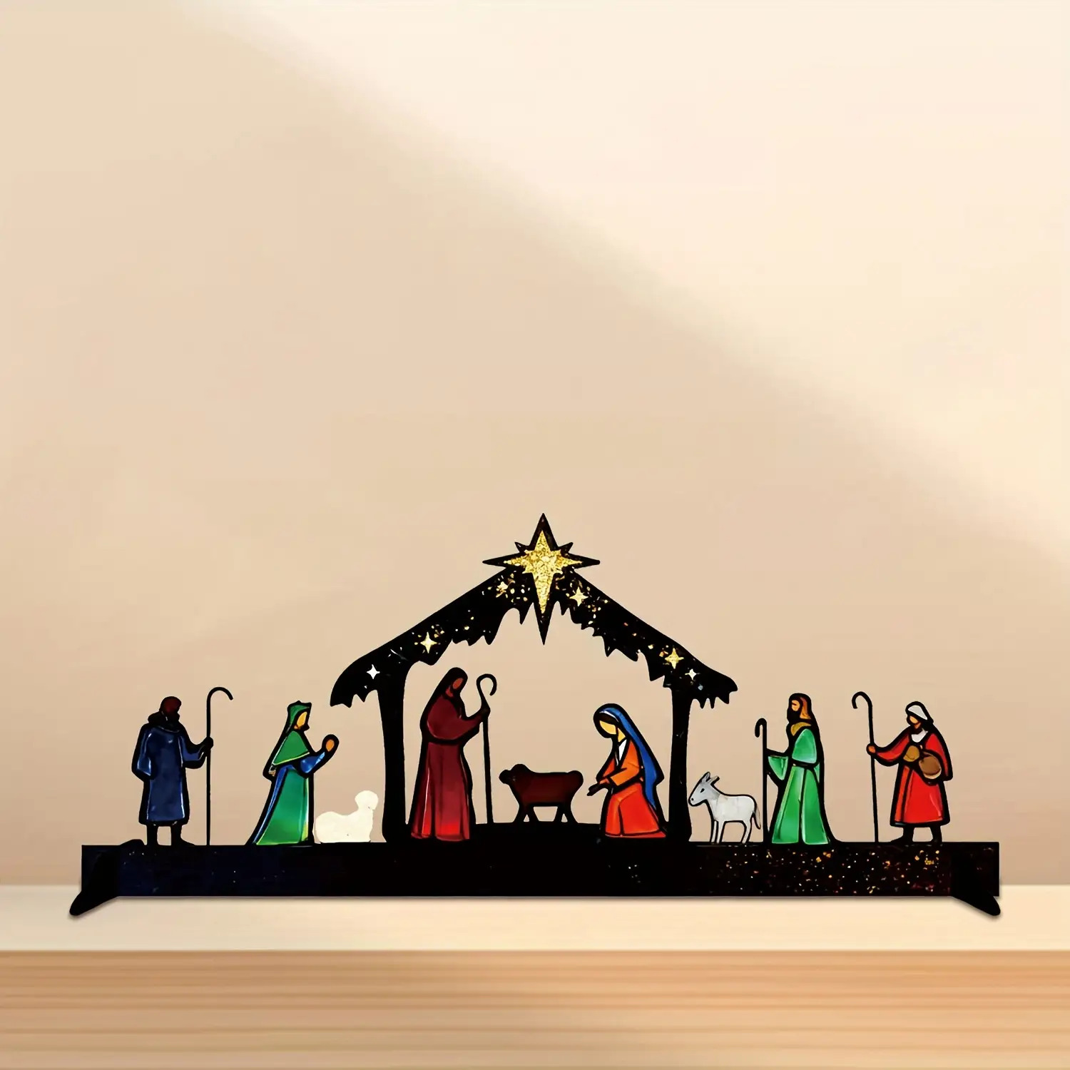 TEMU 2D 평면, 1개 성탄 장면 아크릴 테이블탑/센터피스 - 마리아, 양치기, 포함 전통 출생 장식 - 가정, 교회, 크리스마스, 부활절을 위한 종교적 휴일 디스플레이 - 기독교인을 위한 우아한 선물