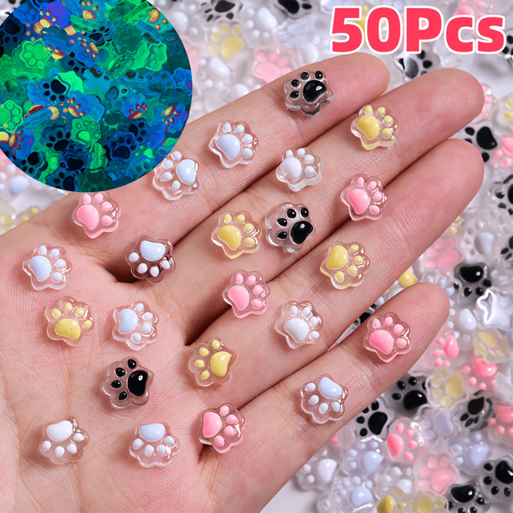 TEMU 50개입 3D 야광 고양이 발톱 네일 참 귀여운 레진 고양이 발 Y2K 네일 아트 장식 헤어 클립 공예 매니큐어 추가