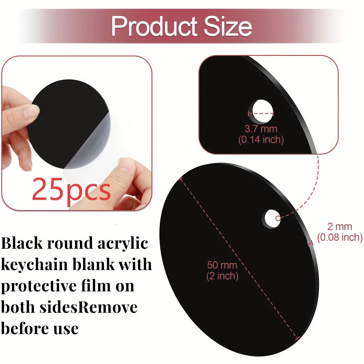 TEMU 50mm 블랙 라운드 아크릴 블랭크 - 양면 보호 필름, 매끄러운 가장자리, DIY 핸드메이드 비닐 페인팅, 키체인, 크리스마스, 할로윈, 추수감사절 & 새해 장식용 원형 시트 - 내구성 있는 공예 재료, 오너먼트 및 파티 액세서리, 크래프트, 클래식 디자인, 광택 표면, 휴일 데코레이터|아크릴물감