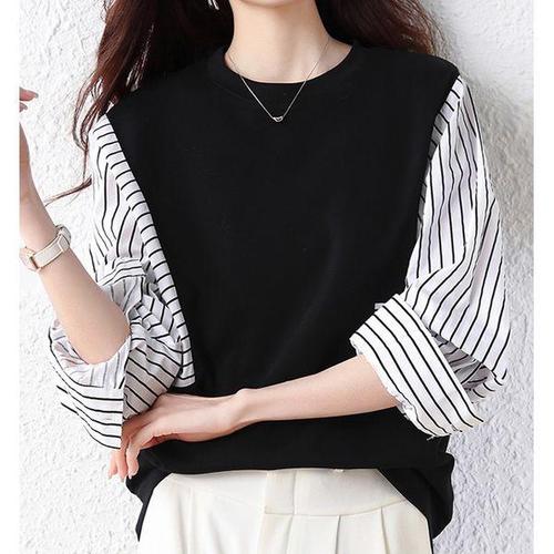 [패션시그널]레이어드 줄지가오리핏 블라우스 6DFEC0