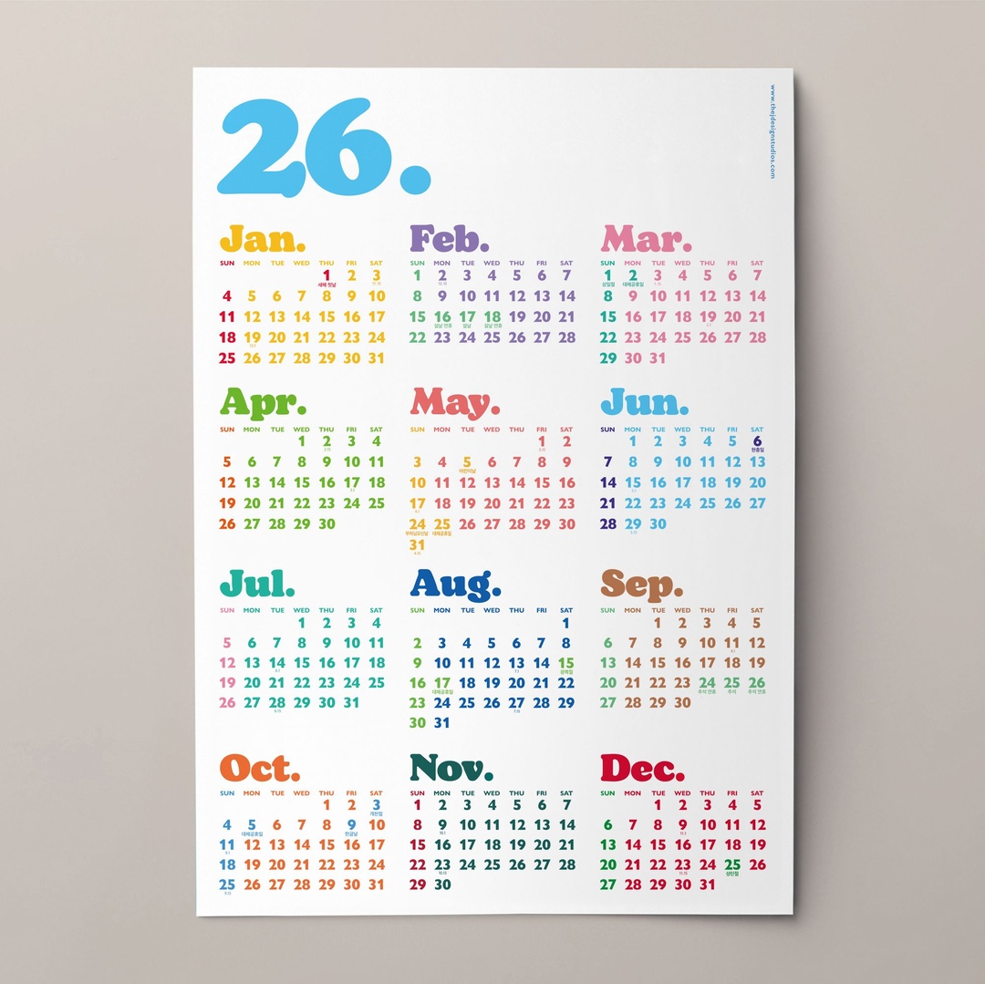 2026 포스터 한장 달력 연력 스케줄러 컬러감성 비비드 캘린더