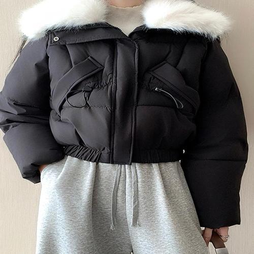 아우터 스트링 퍼 여자 따뜻한 탈부착 패딩점퍼 카라 겨울