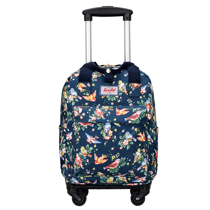 탈부착 가능한 손잡이가 있는 여성용 백팩, 가벼운 휴대용 기내 반입 가방, 방수 프린트 스태킹 여행 가방, 범용 바퀴 포함