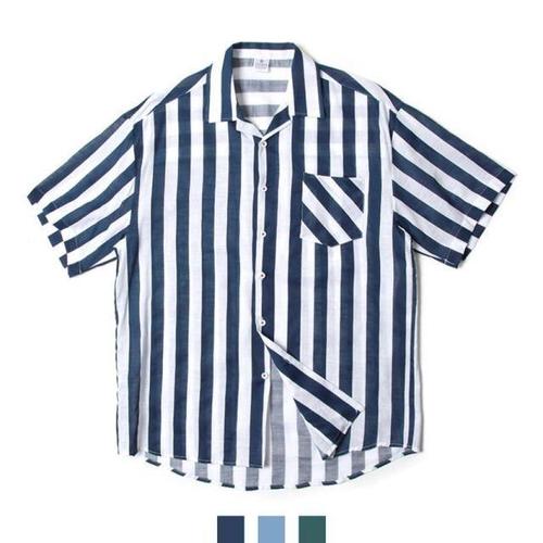 [오너클랜]인기상품 마린 스트라이프 린넨 루즈핏 반팔셔츠 [W17BCB5_260308]