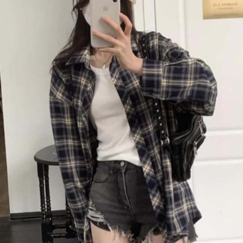 셔츠 남방 데일리 여성 오버핏 루즈핏 체크 롱남방 WFKBXBZ