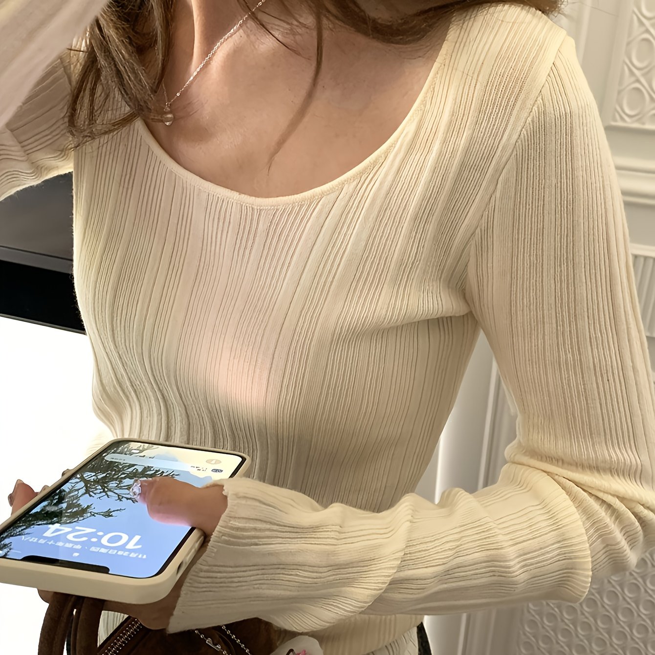 TEMU 편안하고 매력적인 여성용 겨울용 U넥 베이스 레이어. 라운드넥의 캐주얼 스타일이며 단색입니다. 봄, 가을에 적합한 소재로 제작되었습니다.|티셔츠|셔츠|옷