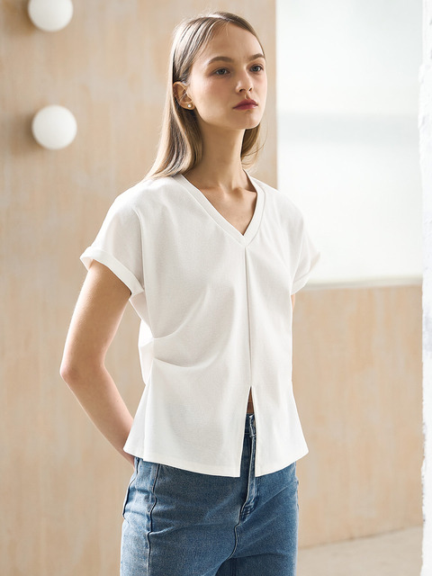 [쥬아르] 라인 웨이스트슬릿 v넥 반팔 티셔츠_2color
