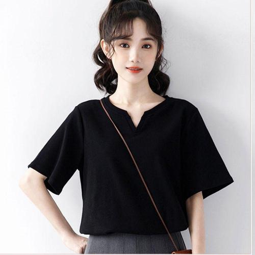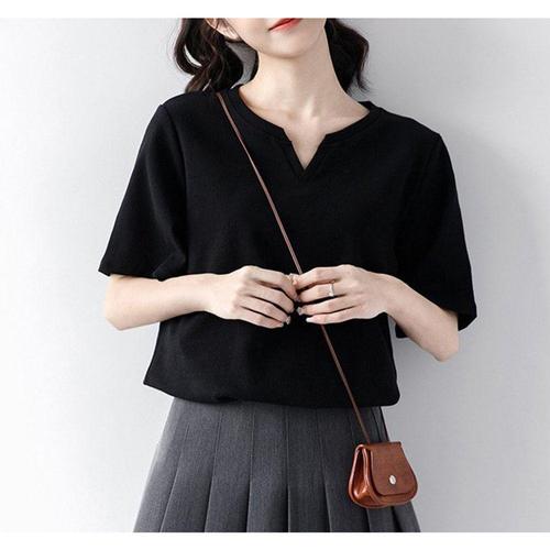 TEMU 여성용 브이넥 블랙 루즈핏 캐주얼 활용도 높은 반팔 티셔츠 상의