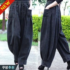 50%할인! 빅사이즈 여성 배기 팬츠 와이드 통바지 데님팬츠 바지 겨울 편한 기모 날씬해보이는 도톰한 패션 데일리 롱 허리 밴딩 포켓 오버사이즈 진 워싱 빈티지 예쁜 청바지