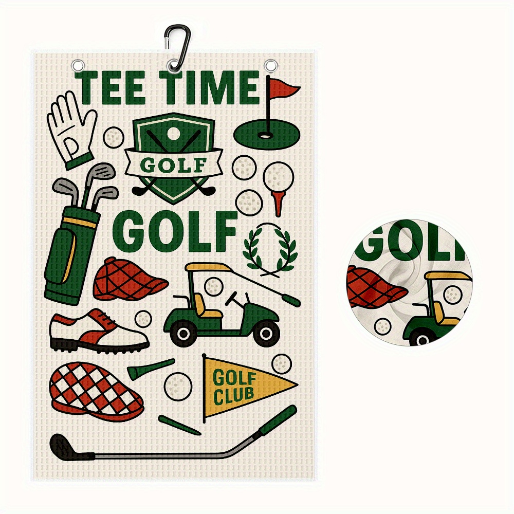 TEMU 1pc 마이크로파이버 골프 타월 클립 - 빠른 건조, 내구성 있는 폴리에스터 스포츠 타월 "티 타임" 골프 디자인, 남성 및 여성용 이상적인 골프 가방 액세서리, 남편, 아빠, 남자 친구, 할아버지, 생일 및 은퇴 선물로 골프 애호가를 위한 완벽한 선물|스포츠타올