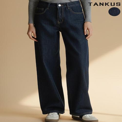 [탱커스][55-66반]여성 기모 일자 인디고 데님 팬츠