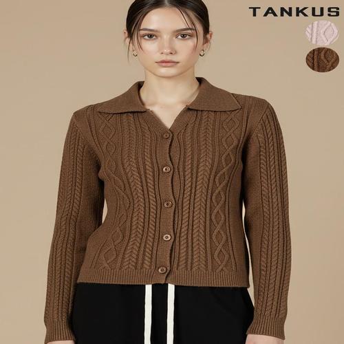 [탱커스]여성 금장 버튼 라운드넥 가디건