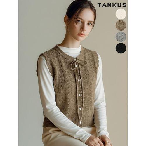 [탱커스]여성 진주버튼 리본끈 니트 베스트