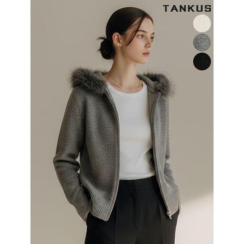 [탱커스]여성 후드 퍼 투웨이 집업 니트