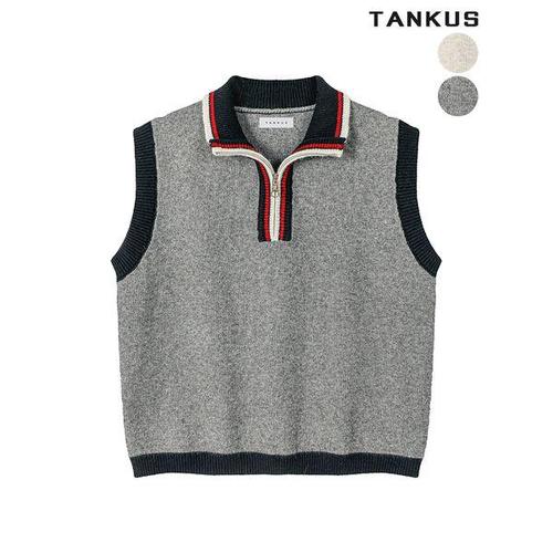 [탱커스]여성 반집업 배색 카라 니트 베스트