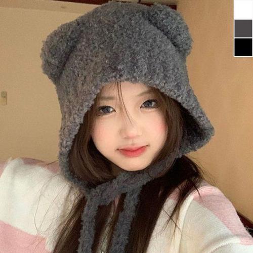 [에이치플러스몰]곰돌이귀 니트 털모자 1P 겨울 보온 패션 귀덮개 모자