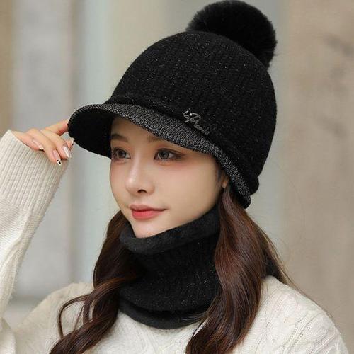 [에이치플러스몰]신상 겨울 캡비니 여자 넥워머 방한 패션 방울털 모자