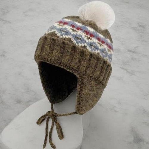 [다잇템]여성 털방울 비니 노르딕 귀마개 겨울모자