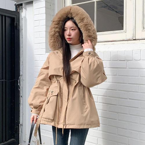 MOSAIRATION 여성 후드 겨울 야상 사파리 자켓 털안감 캐주얼 데일리 잠바 패딩 스웨이드 극복 여풍 인기 겨울 융털 도톰 루즈 학생 점퍼