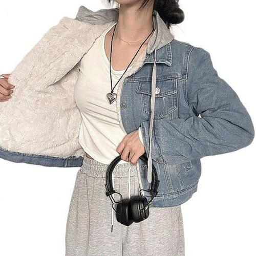[에이치플러스몰]여성용 투톤 겨울철 털안감 탈부착후드티 데일리 데님자켓