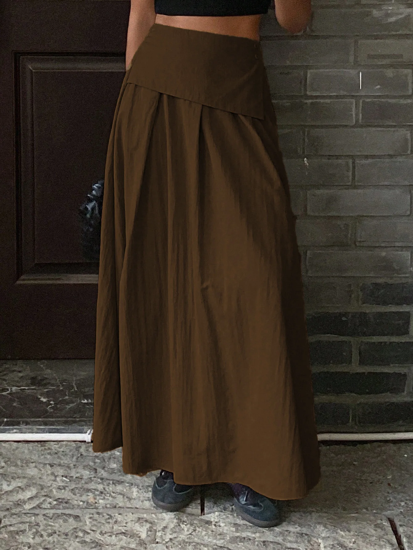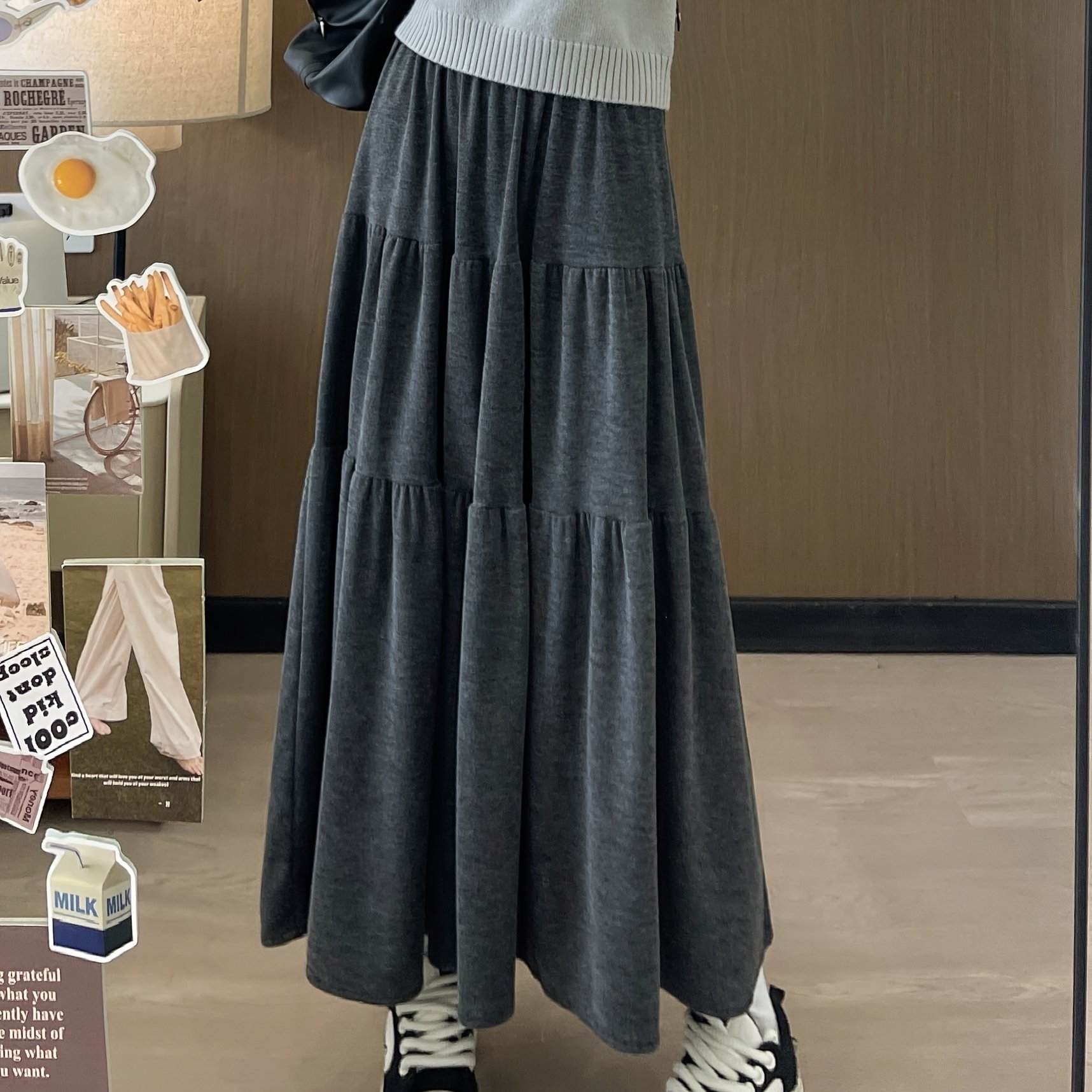 TEMU 스타일리시한 삼중 레이어 우동 스커트, 미디엄 길이 레이지 스타일 고탄력 하이웨이스트 A라인 스커트, 여성용, 보정 효과 있는 가을 겨울 완벽 아이템
