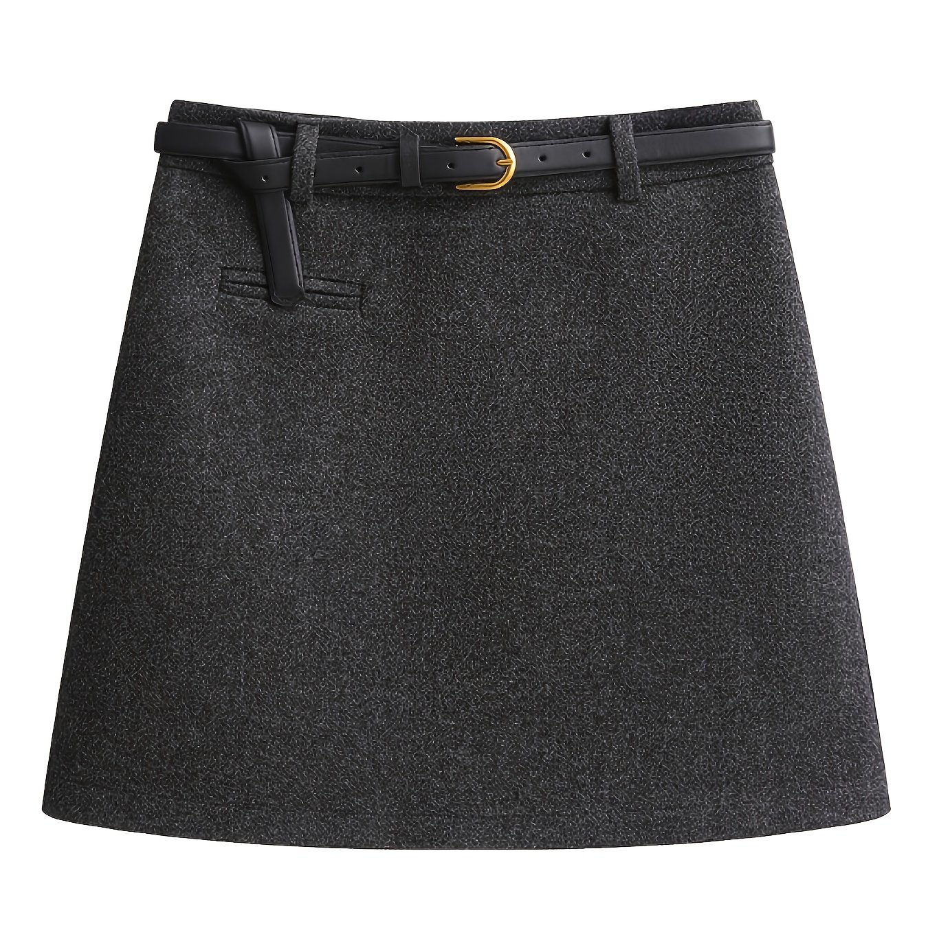 TEMU 2025 가을/겨울 신상 그레이 트위드 A라인 스커트, 페티트 사이즈, 하이웨이스트, 힙 허깅, 벨트리스, 필수 아이템|여성의류