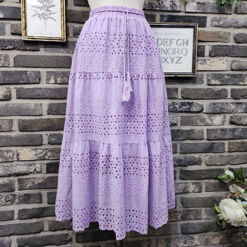 퐁당 / 태슬 벨트 층층 펀칭 밴딩 스커트