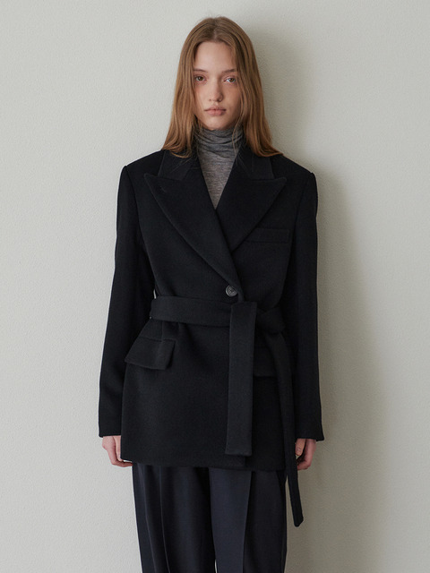 [매넌] 시에나 캐시미어 하프 벨트코트-블랙