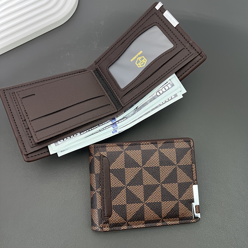 TEMU 남성용 슬림 지갑 - 경량 카드 수납, 현금 칸 포함 - 일상 및 공식 사용 가능 - 브라운 색상, 내구성 있는 모던 머니 홀더, 기하학 패턴, 튼튼한 구조, 비즈니스 프로페셔널을 위한 카드 보관지