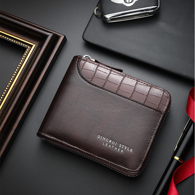 TEMU 빈티지 스타일 남성용 인조 가죽 지갑, 지퍼 & 스냅 클로저 - 슬림하고 미니멀한 디자인의 동전 지갑 - 그에게 완벽한 선물