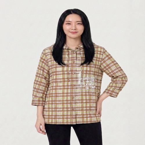 [올리비아하슬러]체크 패턴 레터링 후드 셔츠_OHCMBL106