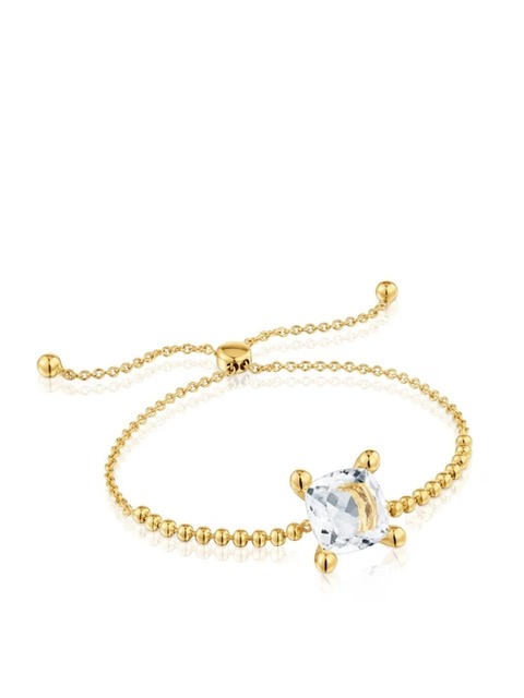 [토스] [TOUS] 18K 골드 버메일 실버 락 크리스탈 쿼츠 화이트 팔찌 1004235400