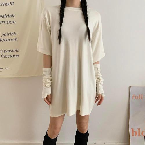 [VY] 여자 토시 티셔츠 U넥 빅사이즈 SS 오버 세트