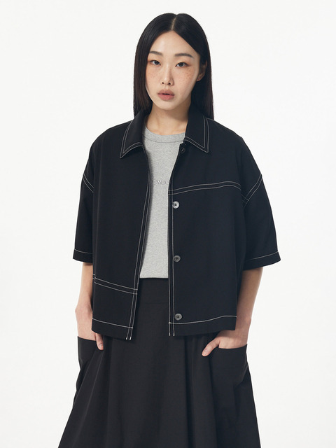 [스튜디오 톰보이] 배색 스티치 폴리 블라우스_블랙 91F5221777
