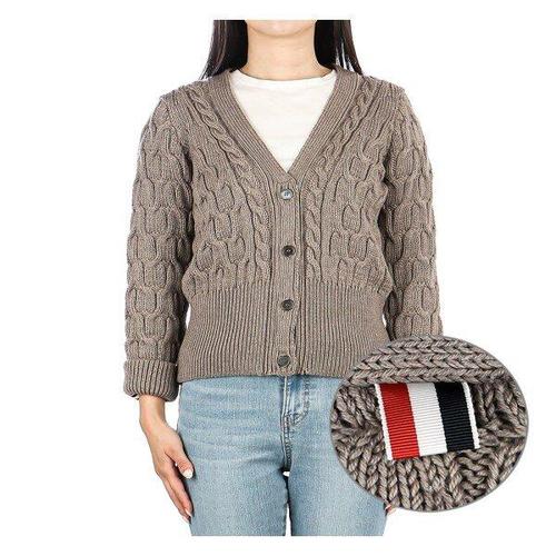 [톰브라운]23FW 여성 크리스크로스 케이블 울 가디건 (FKC527A Y1024 415 23F)