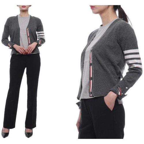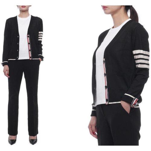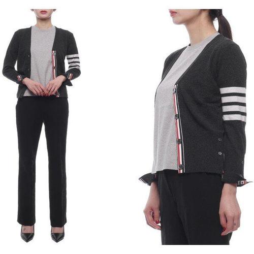 톰 브라운 4 바 스트라이프 V넥 가디건