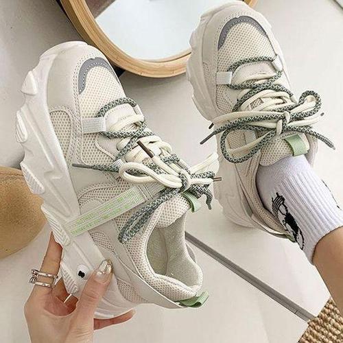[에이치플러스몰]슈레이스 통굽 스니커즈 키높이 어글리슈즈 여성 단화