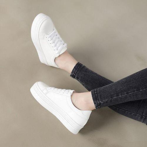 바나슈 여성 아일렛 소가죽 통굽 키높이 스니커즈 6cm