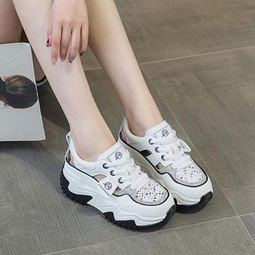 Aesero 여성용 키높이 운동화 편하다 가죽 그물 통굽 스니커즈 8CM