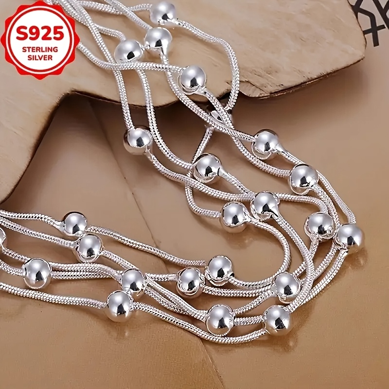 TEMU 1개 패셔너블하고 우아한 실버 비즈 팔찌, 여성에게 적합 - 완벽한 발렌타인데이 선물, 내구성 있는 주얼리 액세서리