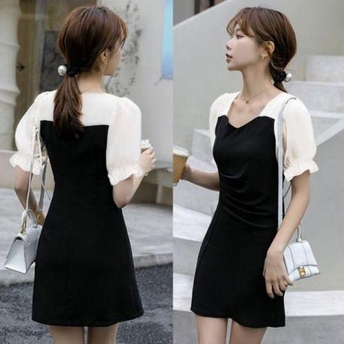 [에이치플러스몰]퍼프 프릴 추천 원피스 미니 꾸안꾸 투톤 드레스 여름