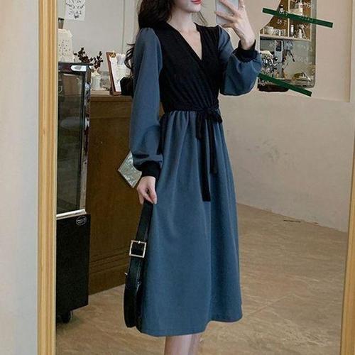 [에이치플러스몰]투톤 V넥 우먼 심플 컬러믹스 2 tone 페미닌원피스룩 OPC016