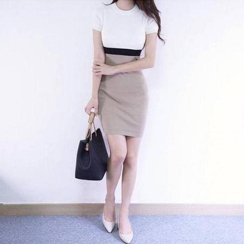 [에이치플러스몰]데일리오픈카라 투톤 타이트핏 심플룩 미니원피스