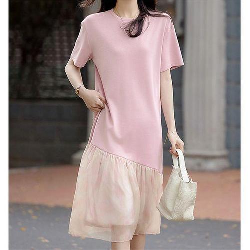 [에이치플러스몰]원형넥 투톤베이직 원피스룩